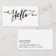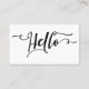 This simple, friendly card features the word "Hello" on the front. It has been rendered here in a beautiful, modern script font, with swirling embellishments, in bold black. The background was set to editable white, which you can change to any color you prefer | Your personal details appear on the back. I've set up template fields for your name, phone number, email address, and there's one additional line for whatever else you'd like to include. Of course you can make further changes, too! Whereas just filling in the template fields will render your details in black, in a versatile serif font, left and bottom-aligned, should you wish to make even more updates, simply click the link for further customization and you can change the font, size, its color, the background color, and the positions of the words. You can also use this option for placing additional text fields on the card, should you need to include more personal information. Please let me know if you need help with anything!