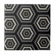 "stylish hexagon tile", "sophisticated elegant hex tile", "penny tile floor decor", "hexagonal charcoal black gold", "dark grey gray cream", "geometric pattern design", "vintage retro modern symmetry", "symmetrical shapes mosaic tiles", "contemporary",