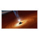 This NASA space art illustration is an artist's concept of a supermassive black hole. The black hole is surrounded by an accretion disk of matter flowing onto it, and there is a beam of energetic particles flowing outwards. Image Credit: NASA/JPL-Caltech