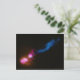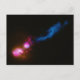This composite image shows the jet from a black hole at the center of a galaxy striking the edge of another galaxy, the first time such an interaction has been found. In the image, data from several wavelengths have been combined. X-rays from Chandra (colored purple), optical and ultraviolet (UV) data from Hubble (red and orange), and radio emission from the Very Large Array (VLA) and MERLIN (blue) show how the jet from the main galaxy on the lower left is striking its companion galaxy to the upper right. The jet impacts the companion galaxy at its edge and is then disrupted and deflected, much like how a stream of water from a hose will splay out after hitting a wall at an angle. Image credit: X-ray: NASA/CXC/CfA/D.Evans et al.; Optical/UV: NASA/STScI; Radio: NSF/VLA/CfA/D.Evans et al., STFC/JBO/MERLIN