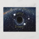 Simulated view of a black hole in front of the Large Magellanic Cloud. The ratio between the black hole Schwarzschild radius and the observer distance to it is 1:9. Of note is the gravitational lensing effect known as an Einstein ring, which produces a set of two fairly bright and large but highly distorted images of the Cloud as compared to its actual angular size.