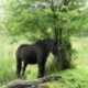 A beautiful black mare resting in the shade of a tree. Watercolor. Wales UK.