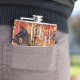 Well made flask, a little better than I had expected. Flask came in clear plastic box which gave it a nice presentation when I took it out of the zazzle packaging. Image is not printed on flask but on sticker. Don't know how this will hold up I haven't used it yet. This would make a Great gift! I plan to purchase more for friends! Cheers. I thought a little brighter than computer. Very crisp, writing wasn't