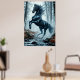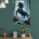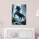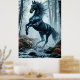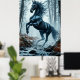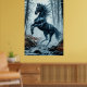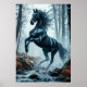 Black Horse Galloping Through a Forest Stream Poster