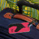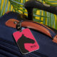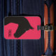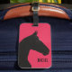 This minimalistic luggage tag offers a black horse illustration and a customizable name. The horse is drawn on a fuchsia background, and this is a great gift for ladies who owns or loves horses.
