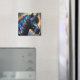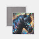Graceful black horse adorned with a vibrant, multicolored mane set against a luminous glitter-filled backdrop, showcasing beauty, elegance, and uniqueness.