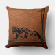 Black Horses on a Rich Brown Faux Leather on a Throw Pillow
