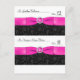 This black and white floral place card with PRINTED hot pink ribbon and PRINTED jewel brooch will add a little pizzaz to your pink and black themed wedding. They are designed on a glossy postcard, with 2 placecards on each postcard. You will have to use a sharp blade or cutter to make a nice clean cut between the cards. **NOTE, if you change the size of the card, or if you change the fonts, or the size of the font, some of the design and/or text may get cut-off. Everything will print as you see it on your monitor. I will not see changes you make, and Zazzle will NOT correct anything (typos, mis-alignment etc.). The text is all customizable. If you need help with this product, please email me BEFORE you place your order. If you require any other matching items, please email your request to niteowlstudio@gmail.com