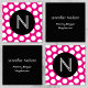 Black Hot Pink and White Polka Dot Monogram Square Business Card
