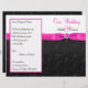 This black and white floral place card with PRINTED hot pink ribbon and PRINTED jewel brooch will add a little pizzaz to your pink and black themed wedding. If you need assistance getting your information to fit or to align properly, please email niteowlstudio@gmail.com. Your document will print out as it appears on your monitor. It will NOT be edited for typos or alignment etc. by Zazzle. ****PLEASE NOTE that the higher grade paper is a card stock and does not fold well.