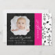 Black elegant damask, with modern floral. Elements include a vibrant pink trim and shadow photo frame.