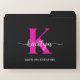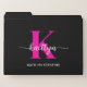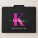 These simple, elegant black set of 3 pocket folders with your first name in a trendy script font in white, your first initial in a modern cap font in hot pink, and your name in CAPS in white are perfect for keeping yourself organized. They're stylish and trendy and yet very classic.