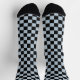 A seamless pattern of alternating black and light blue squares creates a classic checkerboard effect. The design is symmetrical and evenly spaced.