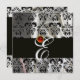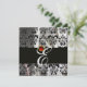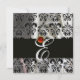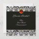 BLACK ICE SILK DAMASK CLOTH MONOGRAM RED RUBY INVITATION