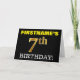 This birthday greeting card design features a message like "FIRSTNAME’S 7th BIRTHDAY!", with the "7th" having a faux/imitation gold-like color appearance. The recipient’s name on the front can be personalized, and the front background is colored black. It also features a customizable birthday greeting message on the inside. A birthday greeting card like this could perhaps be given to somebody in celebration of their seventh birthday. [~Z0000183]