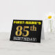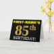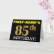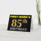 This birthday greeting card design features a message like "FIRST-NAME’S 85th BIRTHDAY!", with the "85th" having a faux/imitation gold-like color appearance. The recipient’s name on the front can be personalized, and the front background is colored black. It also features a personalized birthday greeting message on the inside. A birthday greeting card like this could perhaps be given to somebody in celebration of their eighty fifth birthday. [~Z0000183]