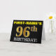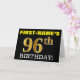 This birthday greeting card design features a message like "FIRST-NAME’S 96th BIRTHDAY!", with the "96th" having a faux/imitation gold-like color appearance. The recipient’s name on the front can be personalized, and the front background is colored black. It also features a personalized birthday greeting message on the inside. A birthday greeting card like this could perhaps be given to somebody in celebration of their ninety sixth birthday. [~Z0000183]