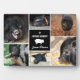 Pet pig memorial plaque printed with a photo collage of six photos featuring your beloved pet pig. Add their name too in a modern white script against a black background and beneath In loving memory and the white silhouette of a happy pig standing on all four hooves. Honor the pet pig you've lost with this pet pig photo collage plaque personalized with photos and your pet pig's name.