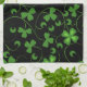Delicate tracery of stems and pretty green shamrocks on a black background with classic gold Celtic knotwork.Lovely Irish gift idea for St. Patrick's Day or all year round on a wide selection of items in my store.