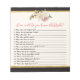 Black, Ivory, Gold Floral Bridal Shower Game Notepad