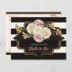 This bold and beautiful bridal shower recipe card matches the bridal shower invitation shown below. This black and ivory striped bridal shower recipe card features a large bouquet of flowers, including creamy yellow roses, pale pink roses, a white rose, and several orange Peruvian Lilies at the top of the card that has a black and simulated gold edged bracket-shaped text area that has sage green and coral pink below that says, "A Recipe For the Bride-to-Be". The back side has the same color palette with room to add a recipe of your choice to bring to the bridal shower.