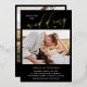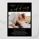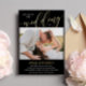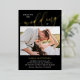 Simple and beautiful double sided two in one photo wedding invitation with your photos. Join us for the wedding of is written at the top of the photo wedding invite, with wedding in a beautiful calligraphy script printed in gold foil. Your names in gold foil too. On the other side, add another photo and additional wedding information your guests will need. Black and gold photo wedding invitation.