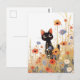 Black Kitten in Orange and Blue Wildflower Meadow Postcard