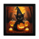 Black Kitten in Witch Hat Amid Halloween Pumpkins Gift Box