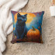 Black Kitten Pumpkin Full Moon Autumn Leaves Throw Pillow