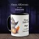 Here's a cute Halloween mug for kids that is more fun than scary, and can easily be customized for a grandchild, son, or daughter. It features an adorable black kitten wearing a witch's hat and sitting on top of a grinning Jack o' Lantern. The image is printed twice on the mug, with black text at the center that you may customize for your own greeting. Especially appropriate for young kids.