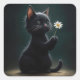 Black Kitten With a White Daisy Square Sticker