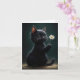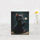 A tiny black kitten sits, gently holding a white daisy in its paws, with a calm and curious expression for a blank note card.