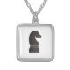 Black knight chess piece silver plated necklace