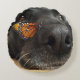 Black Labrador Retriever Dog with an orange Monarch butterfly on his nose photograph image.