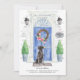 Announce your new address with our stylish announcement featuring a Black Lab, blue front door, welcome mat, slate sign, topiaries and a floral wreath set on a gray brick background.