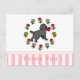Cute Black Labrador Retriever Puppy Thank You postcard. An adorable Black Labrador Puppy is looking back with a little red heart in his/her mouth expecting your attention!! You can add text. Whimsical and cute Labrador Retriever Cartoon Design created by Naomi Ochiai from Japan. Great fun gifts for dog lovers who own Black Labradors. Pink and white stripes pattern with a flower wreath.