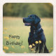 These birthday coasters feature a handsome black Labrador retriever. The text can be changed for the occasion.