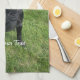 Black Lab with two sticks Dog Photo and Name Kitchen Towel
