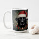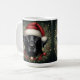A black Labrador wearing a Santa hat is encircled by vibrant Christmas decorations, capturing the joyful spirit of the holiday season. The design features greenery, ornaments, and festive accents.