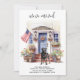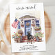 Announce your move to family and friends with our patriotic moving announcement featuring a beautiful watercolor painting of a Black Labrador dog, modern house with a blue door and the American flag proudly displayed on the front porch. This announcement is perfect for dog lovers and anyone looking to announce their new address. With its red, white, and blue color scheme, this announcement is a great way to show your love for the USA while sharing your exciting news. Let everyone know that "We've moved!" and invite them to come visit and meet your best friend in your new home. COPYRIGHT © 2023 Judy Burrows, Black Dog Art - All Rights Reserved. Black Labrador Patriotic Personalized Dog Moving Announcement