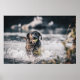 Black Labrador Plays Fetch In Water Poster