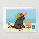 Black Labrador Puppy Straw Hat Cartoon Postcard. Cute Black Lab is having fun at the beach!! Whimsical and funny Labrador Retriever art created by Naomi Ochiai from Japan. Nice gift idea for dog people who love Labrador Retrievers.