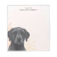 Celebrate your love for Labs with this handsome, personalized notepad. A beautifully detailed illustration of a black Labrador Retriever gazes out from the lower-left corner. The soft, neutral background complements the dog's rich coat. Add your own custom text to make this notepad a unique and cherished item. Perfect for dog lovers, reminders, or to-do lists.