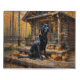 Black Labrador Retriever Log Cabin Autumn Jigsaw Puzzle