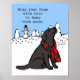 Black Labrador and Tartan Scarf Print. Whimsical and funny Labrador Retriever Dog Cartoon created by Naomi Ochiai from Japan. Nice gifts for dog lovers who love Labradors. An innocent looking Black Labrador shows off his/her new tartan plaid scarf wrapped by his/her Mom in the snow filed. For Black Lab Fans! You can customize text.
