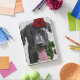 I was super excited when I got my cover in. It is attached by a magnet across the edge. I don’t think it will be very protective but it is very cute. I’m going to keep my iPad in a sleeve and use this face cover while I have it out. It folds to create a tilt for better viewing and to keep the iPad at a slight angle for typing. The colors are bright and it is fun. I’ve really enjoyed it. The personalization looks like amazing. It is the same color as the picture and is the same brightness. Well done! Very nice.