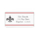 2”l x 3.75”w white address label with an image of a black lace fleur de lis with red borders. See matching favor tag, square sticker, custom-cut vinyl sticker and wrapping paper. See the entire Cancan Label collection in the INVITES | Stickers & Labels section.