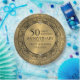 Elegant ornate black lace mandala over gold tones background, 50the wedding anniversary customizable template.
