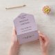 This easy to customize all-in-one wedding invitation has a delicate and pretty style with my black lace illustrations set against a soft lavender colored background. This invitation requires no separate envelope and no separate RSVP card. It's designed for you to write in the name and address of each recipient by hand.