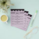 Create a beautiful menu for celebrating your special day. These simple small paper sheets have pretty, modern look. This design features my black lace illustrations set against a soft lavender background. On the front you can customize the course names and food descriptions with your own text. On the reverse side you can personalize these menus with the name of the bride and groom and the wedding date.